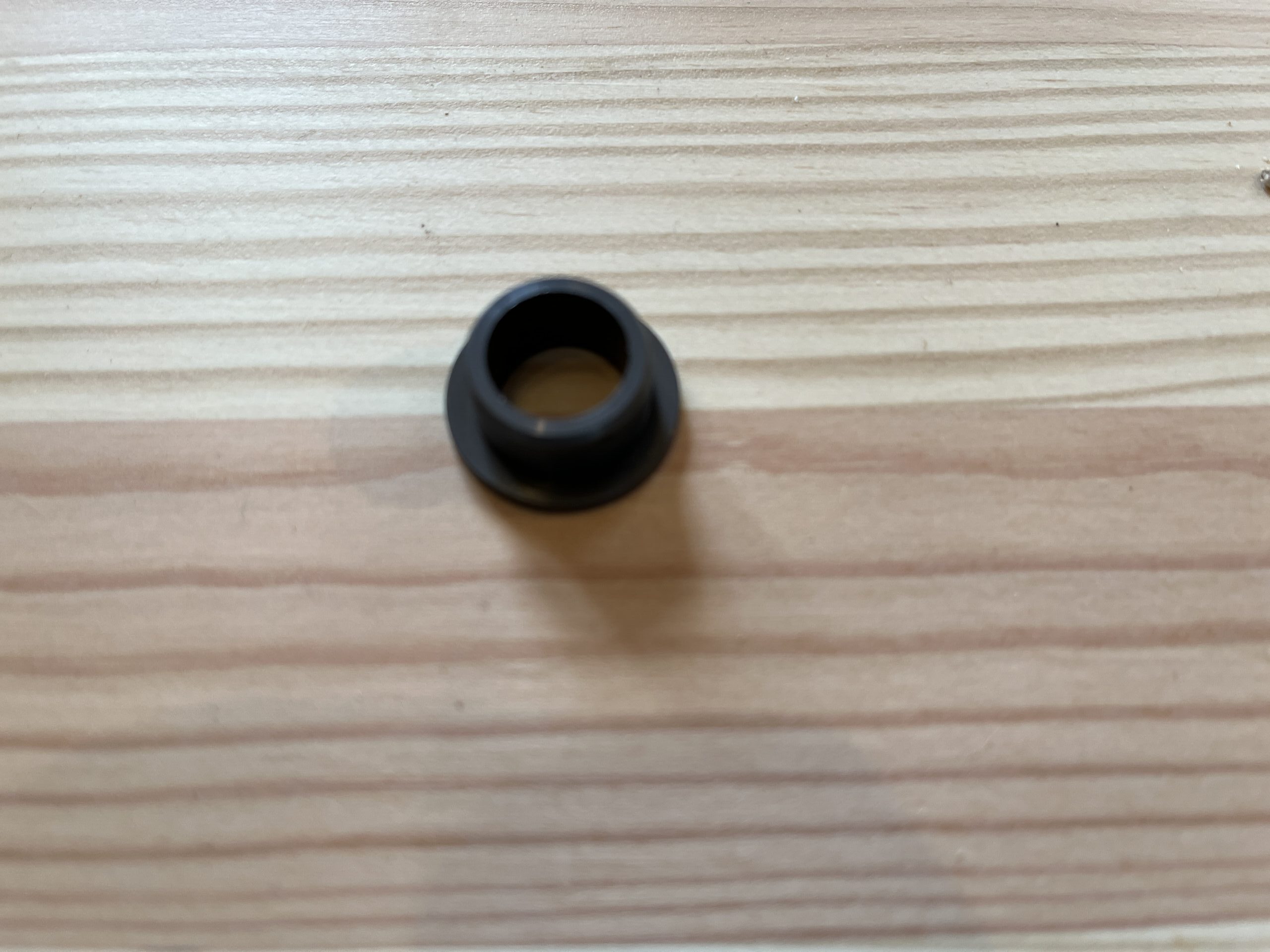 IGUS Gleitbuchse mit Bund für Velomobile der Alpha-Serie. Buchse zur Befestigung des Stoßdämpfers oben am Radkasten. Bunddurchmesser: 22 mm, Außendurchmesser: 16 mm, Innendurchmesser: 12 mm, Länge: 10 mm